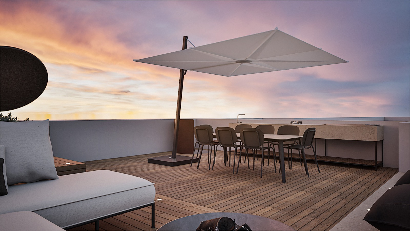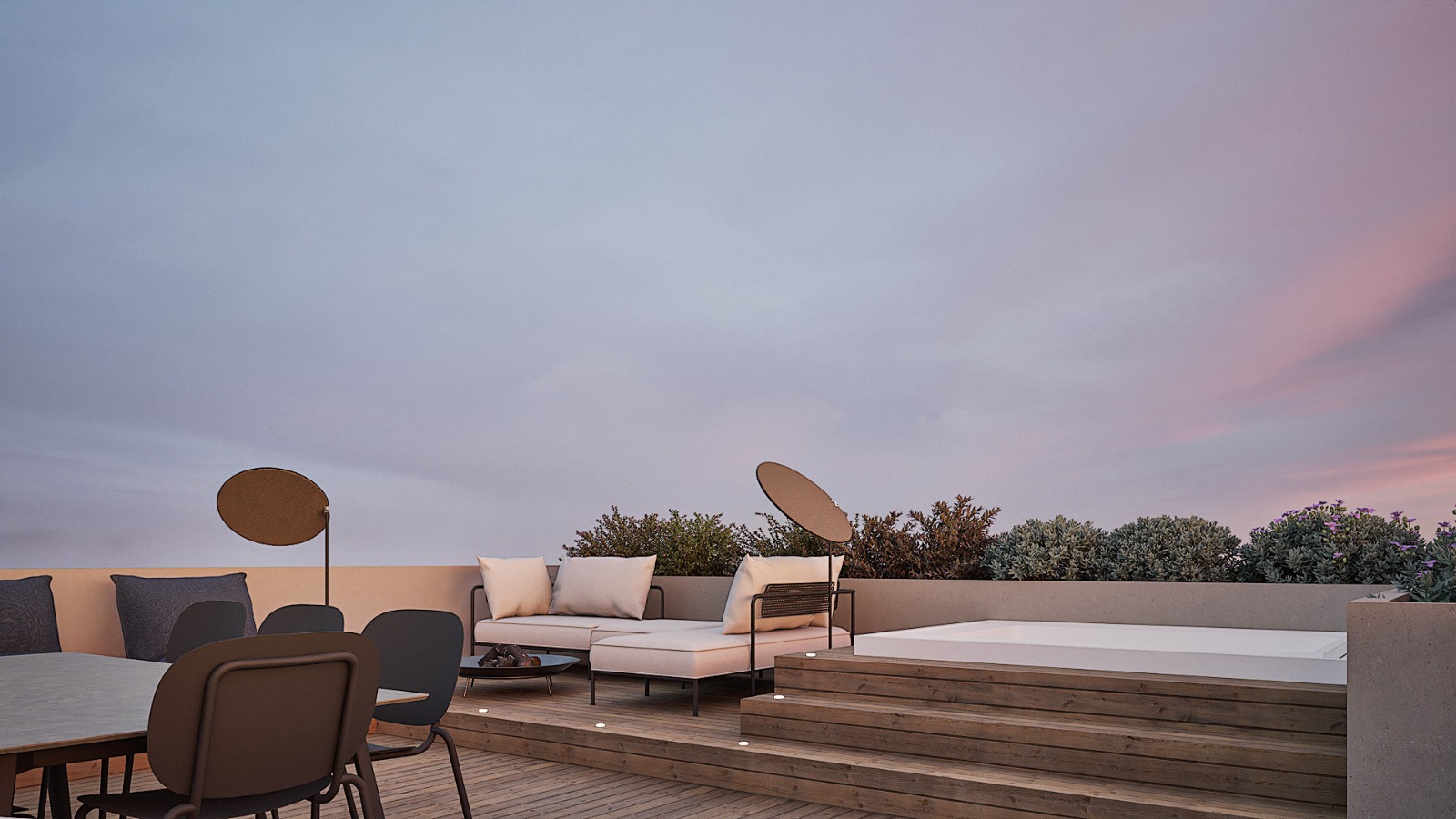 Attico in stile minimal, dove eleganza e semplicità si incontrano.